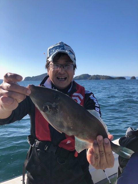 11月21日土曜日、ウマズラ釣りで6時出船、天候晴れ、小潮、今日は北東の風やや強くポイント波の弱いところを選びましたがスタートから良く当たりましたね!少し地合い過ぎポイント移動そこそこ楽しめたのではと!釣果 ウマズラ11匹~16匹 ゲストに40センチ真鯛 メバル アジ等々。14時納竿させて頂きました。(マスク着用お願いいたします。)