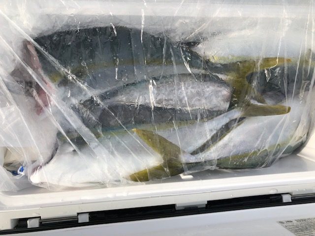 11月27日金曜日、ライトジギングで6時出船、天候晴れのち曇り中潮、ポイントに着き直ぐに地合いに入りサゴシ、ヤズ、ポンポンヒット!サゴシ、ヤズ、10数匹リリースのお客さんも!途中休憩タイム後半地合いに入り90センチサワラ、70センチハマチよっかたです、 釣果 90センチサワラ1匹、70センチハマチ2匹、80センチスズキ、サゴシ18匹、ヤズ12匹 潮も終わり14時納竿させて頂きました。(マスク着用お願いいたします。)