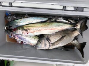 10月25日土曜日 ライトジギングで6時出船天候曇り、中潮、今日はライトジギングの常連さんとのんびりとサワラ狙いでしたがサゴシ君多かったですね。でもつれれば楽しいですね😊釣果 サワラ3匹、サゴシ25匹、真鯛3匹、クロダイ3匹、14時納竿させて頂きました。