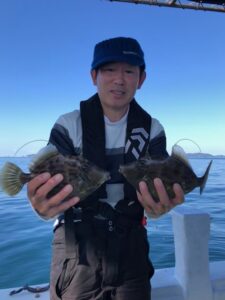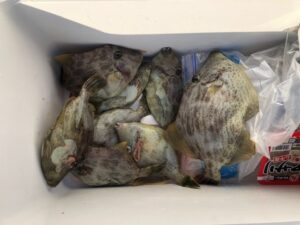 11月22日土曜日 カワハギ釣りで5時30分出船天候晴れ、大潮、今日も天候よく釣り日和でしたね。これから水温低下で厳しくなりますがカワハギ釣りの面白さを楽しんでください。肝パンパンです美味しく頂いて下さいね。😊