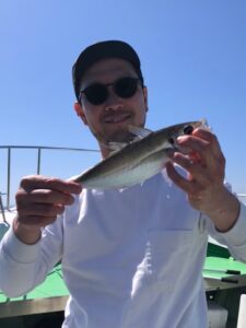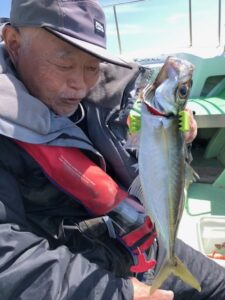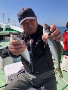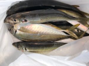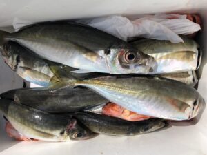 4月11日土曜日 アジ釣りで6時出船天候晴れ、小潮、今日は午前中風やや強くほぼアジ釣りに始めは喰い悪く少し我慢お願い致します。地合い到来です😅釣果アジ30センチ~35センチ一人15匹前後よっかたです‼(お願い,,ホームページのお知らせの覧も見ていただければ幸いです燃料高騰の為のお知らせを少し書いておりますので宜しくお願い致します。)
