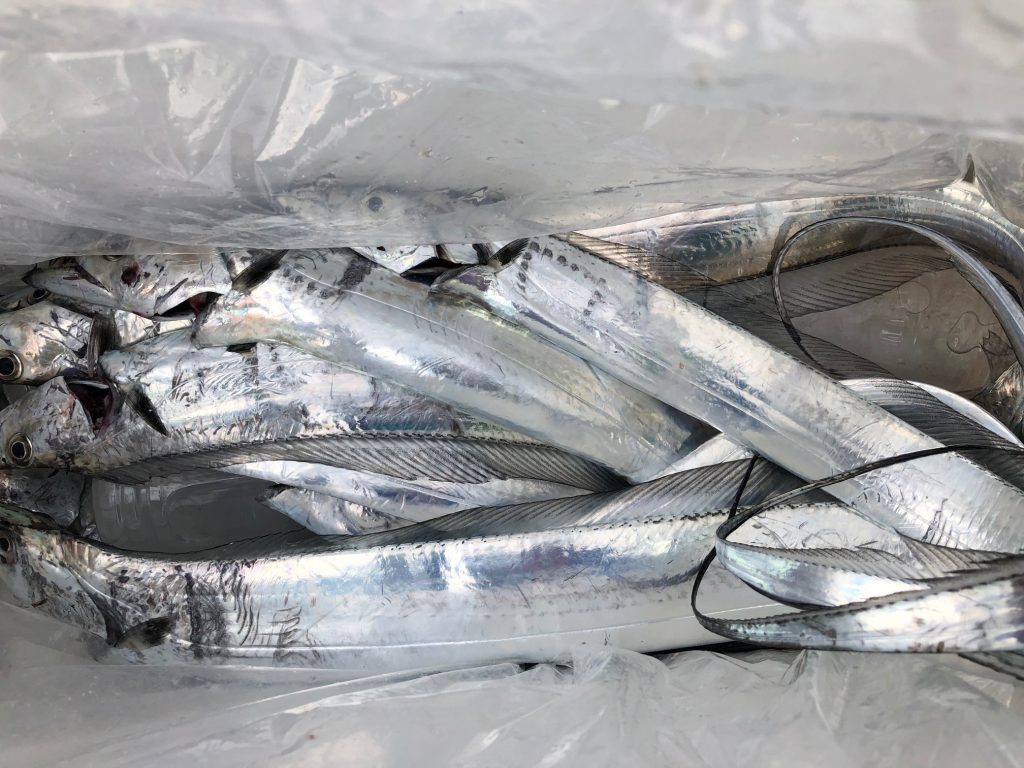 12月5日木曜日、タチウオ釣りで6時出船天候曇り、ポイントに着き幸先よく皆さんにヒット‼潮変わり食い悪くポツリポツリという感じです釣果一人10匹~15匹、指3~4本少し早目13時30分納竿させて頂きました。